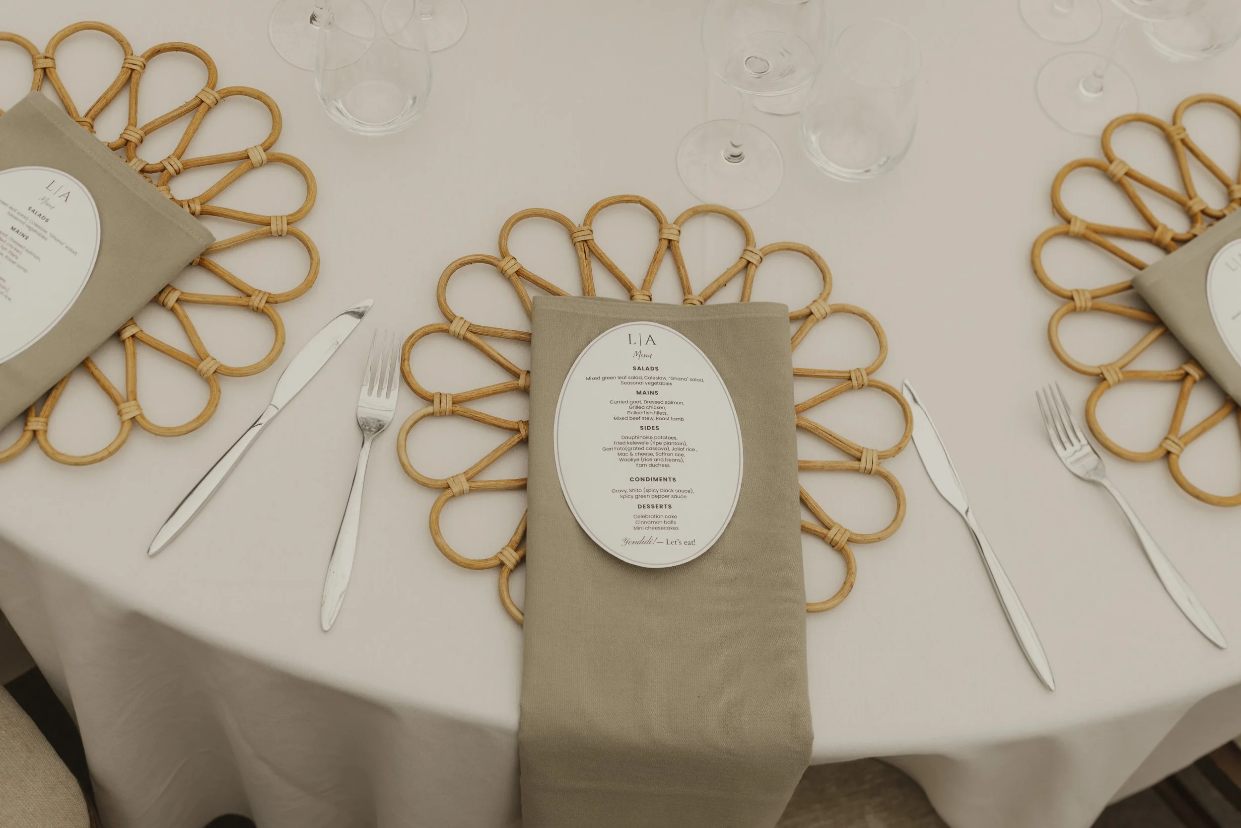 Early in the planning process, we knew we wanted to do something a little different. We love Ghanaian food, but let’s be honest, if you line up five Ghanaian weddings, you’ll probably see the same menu: jollof, waakye, chicken, fried rice etc. Delicious? Absolutely. But it made us wonder, does wedding food always have to follow the same script?
