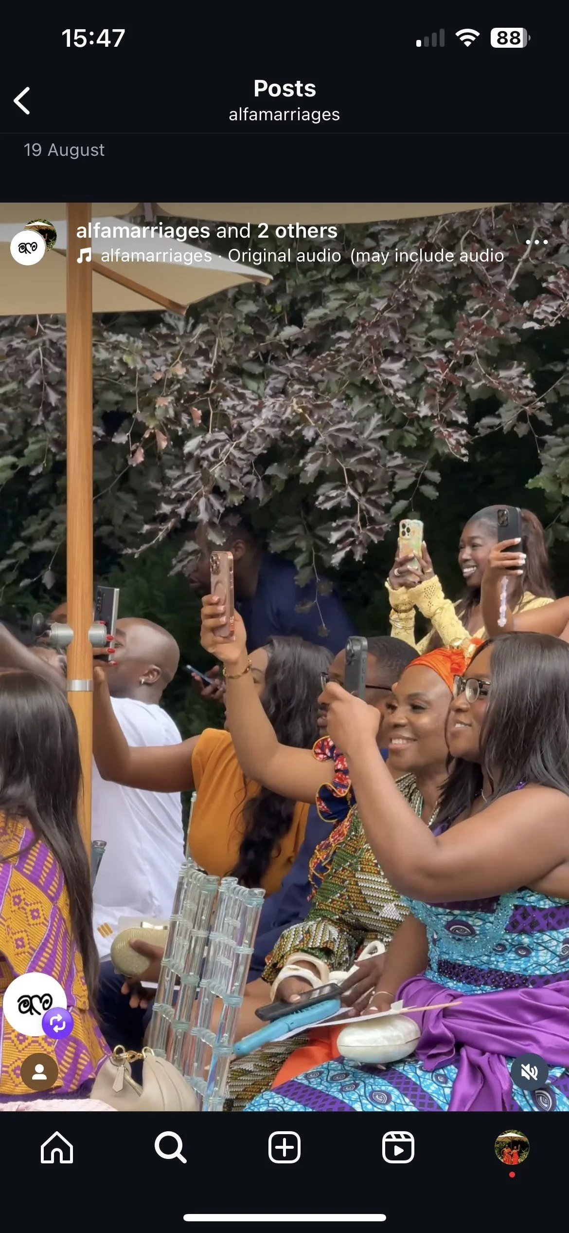 Vendors started reaching out to our content creator, not us, asking for wedding footage to post on their own platforms. Some didn’t even ask. Scrolling on Instagram aimlessly, I randomly came across a video of my dad and I dancing and another clip of me sent to one of our vendors in Ghana.